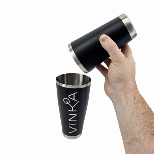 VINKA - Weighted Boston Tin Shaker Set with Toby Tin & Hawthorne Strainer - Matte Black Stainless